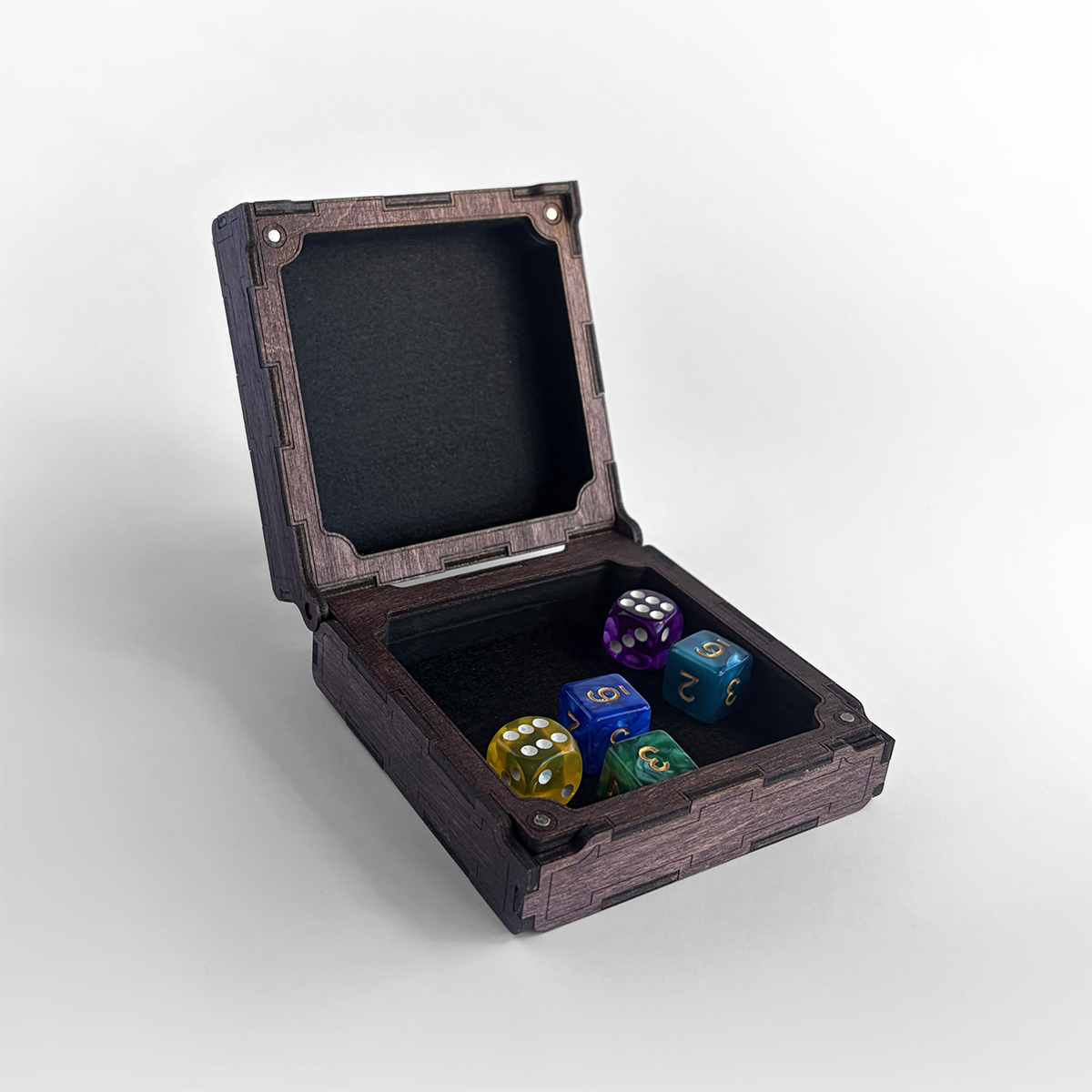 Unleash a perfect rolling arena wherever your adventures take you. The Nomad’s Arena is the ultimate travel-ready solution for the adventurer on the move. In one moment, it’s a compact, hexagonal wooden case, easy to slip into any bag. Unfold it, and it transforms into a full-sized, felt-lined rolling tray, providing a premium surface for your most important rolls.